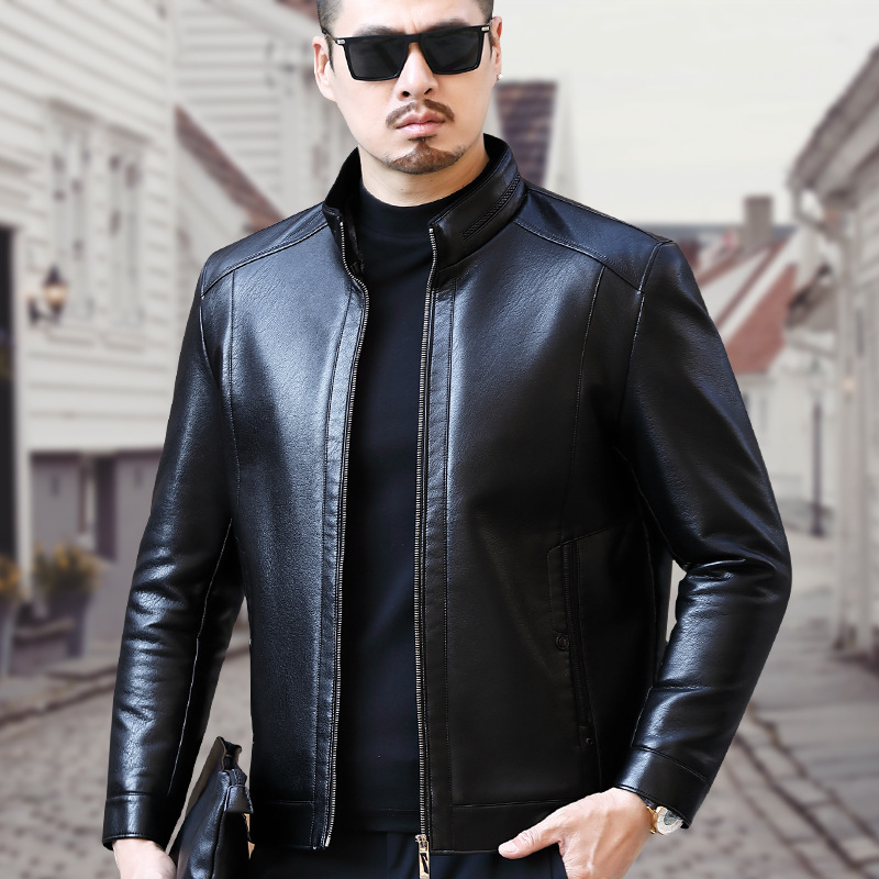 上質な本革を使用したスタンドカラーのジャケットです。 アメカジスタイルの定番アイテムとして、シンプルなデザインながらも存在感のある一着に仕上げました。 裏地には保温性の高い起毛素材を採用し、秋冬シーズンも快適に着用できます。 フロントはジップアップ仕様で着脱も簡単、すっきりとしたシルエットが大人の男性らしさを演出します。 カジュアルからきれいめまで幅広いコーディネートに対応する万能アイテムです。
