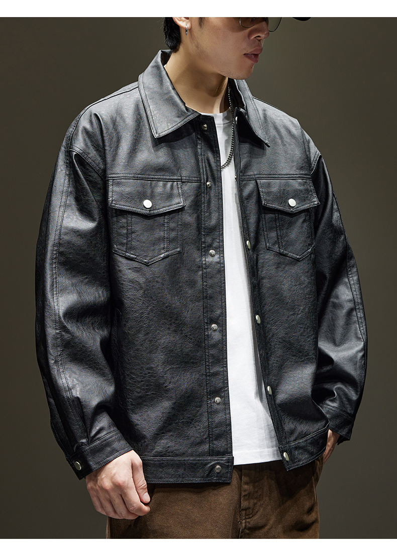 アメカジスタイルの定番であるウエスタンデザインを取り入れたシャツ型ジャケットです。 胸元の大きなフラップポケットとスナップボタンが特徴的で、カジュアルながらも存在感のある一着に仕上がっています。 柔らかな合成皮革素材を使用し、着心地の良さと機能性を両立しました。 ゆったりとしたシルエットで、重ね着にも最適なジャケットです。 普段使いから休日のお出かけまで、幅広いシーンで活躍します。
